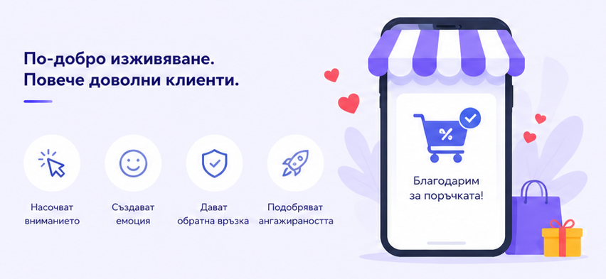 Потребителите искат да знаят, че действията им се разпознават. Микроанимациите, като например промяна на бутоните, индикатори за зареждане или ефекти при задържане на курсора, дават незабавна обратна връзка, която подобрява увереността и доверието.