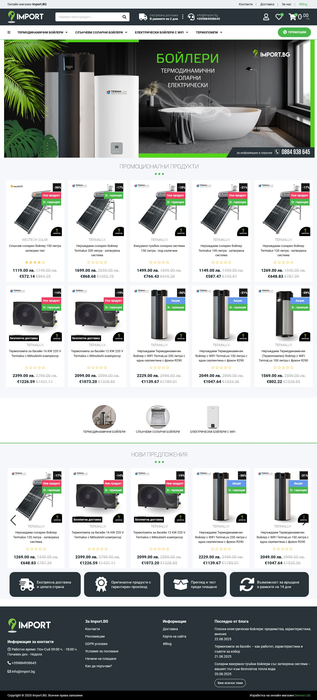 Import.bg is an online store specializing in heat pumps and heating systems, designed with a focus on convenience, speed, and reliability. The project delivers a modern user experience and provides easy access to energy-efficient solutions for both homes and businesses.